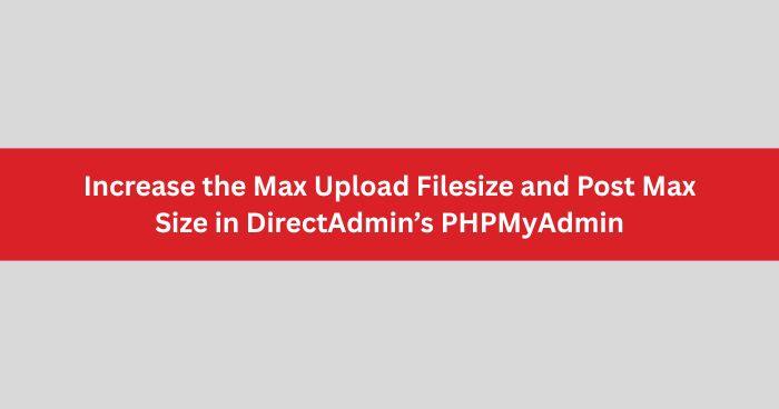 To increase the maximum size of a database that can be uploaded in DirectAdmin’s PHPMyAdmin, one must edit the used PHP version’s php.ini to adjust the setting, and then restart the appropriate services. The examples given below apply to a DirectAdmin server using PHP-FPM as the PHP handler.