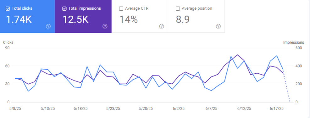 We have successfully listed your website in Google, implemented tools like Google Search Console, begun optimizing metadata, and published targeted blog content.